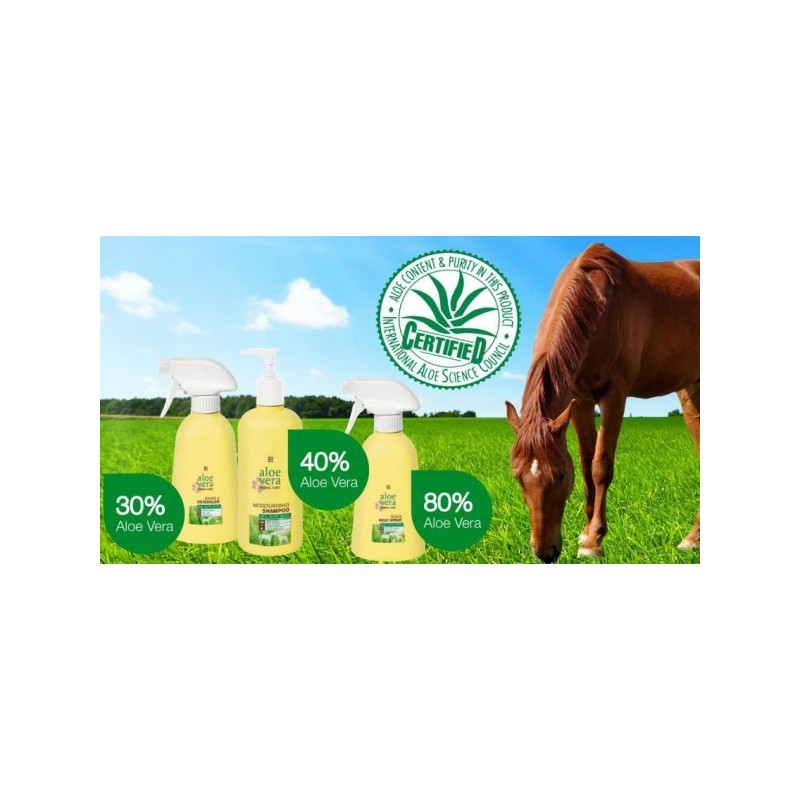 Idratazione profonda del pelo. Uno Shampoo delicato per animali con il 40% di Gel di Aloe Vera, pulisce a fondo il pelo del vostro cane e del vostro cavallo. Una delicata detersione ed un delicato trattamento per un pelo morbido, lucido e setoso.